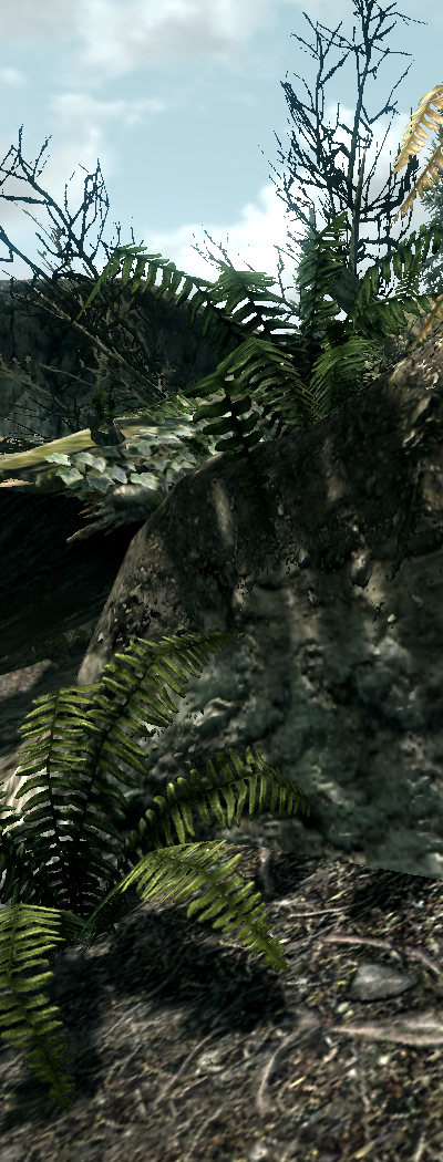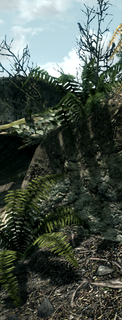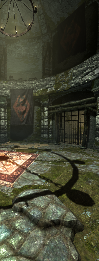 Но чисто технологически Skyrim все равно уступает другим игровым хитам 2011 года: Crysis 2, Battlefield 3, Witcher 2 и пр. Во-первых, и это характерно для гигантских миров Bethesda, в пятой части TES среди текстур достаточно высокого разрешения часто попадается сделанная на скорую руку размазня. Неудивительно, что уже появились пакеты HD-текстур, которые исправляют этот недостаток. Обидно, что игроки сами в короткие сроки сделали то, что не удалось команде профессиональных дизайнеров за несколько лет. Кроме того, рендеринг Skyrim выполняется с помощью DirectX 9, поэтому таких «конфеток для глаз», как тесселяция, здесь нет. Более того, не реализованы даже некоторые технологии из DX9, например мягкие тени, которые были в Oblivion.