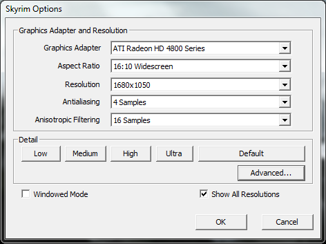Опция Antialiasing в Skyrim активирует стандартный мультисемплинг (MSAA). Одновременно с ним или вместо него можно включить FXAA — упрощенное сглаживание, которое, в отличие от честного антиалиасинга, выполняется фильтром постобработки. Фактически FXAA просто немного размывает картинку ценой лишь небольшого снижения производительности.